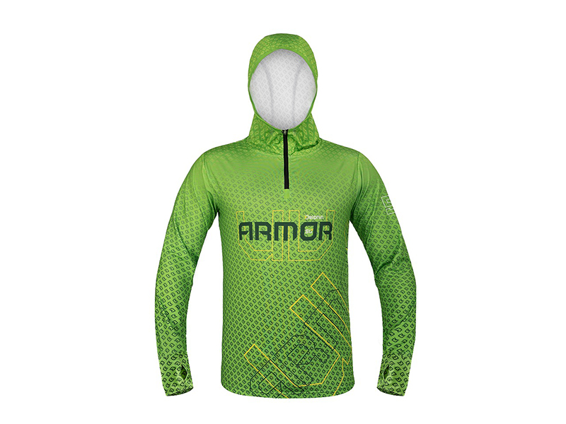 Biorąc pod uwagę fakt, że głowa może się bardzo szybko przegrzać, bluza posiada wysoki kołnierz i kaptur. Ponadto rękawy są wyjątkowo długie i mają otwory na kciuki, aby chronić dłonie. Wykonana jest z miękkiego, elastycznego materiału, który szybko schnie w przypadku zamoczenia podczas wędkowania.