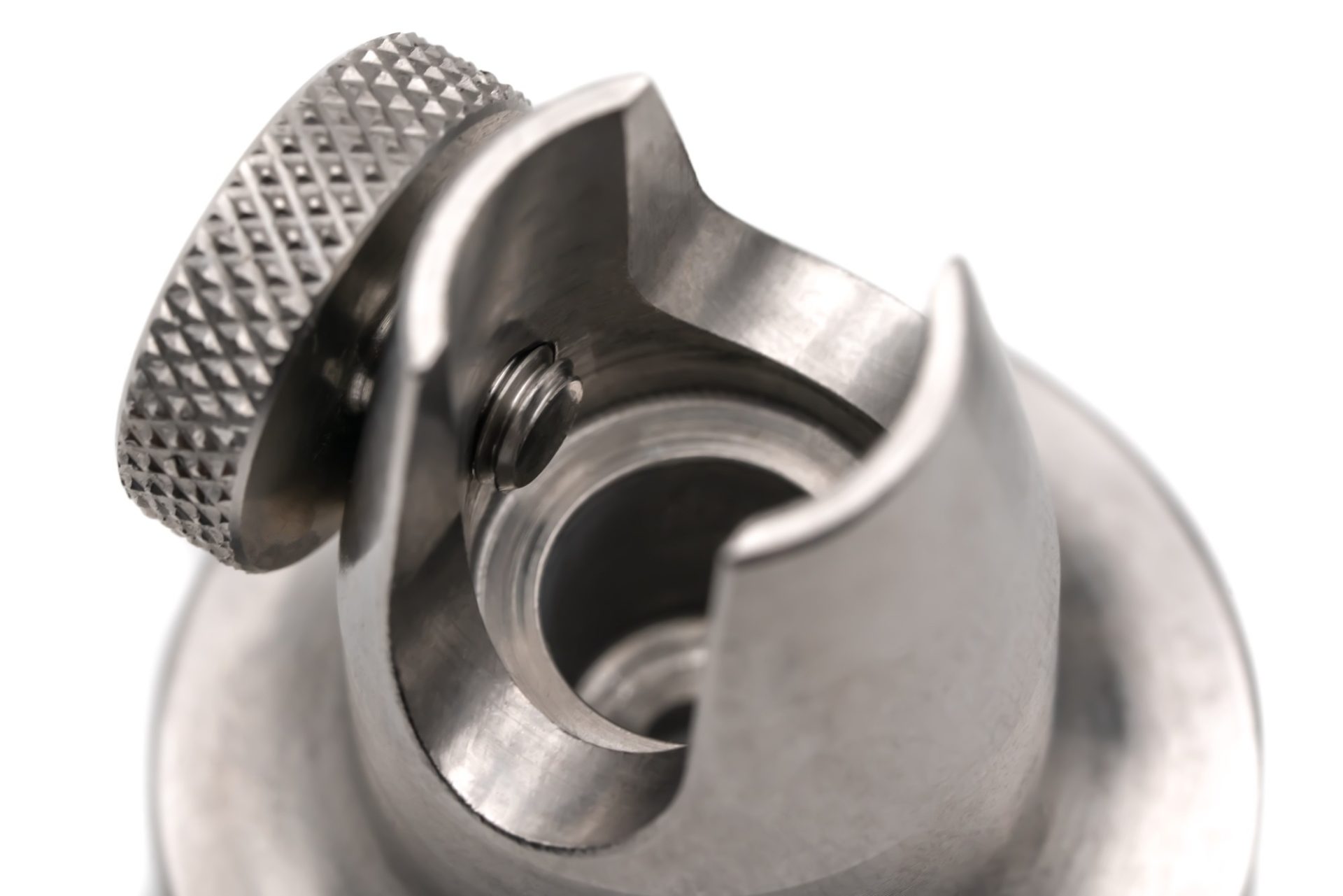 - Czarny, anodowany kapsel zakańczający dolnik z wycinanym laserowo logo „S”