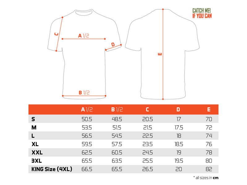 Sama koszulka jest wysokiej jakości, podobnie jak kolor użyty na nadruku. Oferujemy je w szerokiej gamie rozmiarów od S do KING SIZE (odpowiednik 4+XL, w większości krajów określany jako XXXXXL. Model King size bez problemu ubierze nawet największych wędkarz ważący 135 kg+.