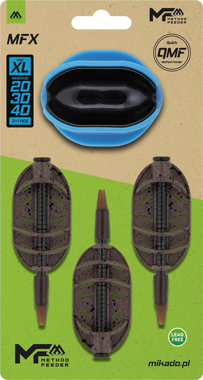 W ofercie marki Mikado znajdziesz wszystkie elementy potrzebne do nowoczesnego i świadomego karpiowania! a między nimi właśnie Mikado – KOSZYCZEK – METHOD FEEDER MFX – Q.M.F. rozm.XL – KOMPLET – 20+30+40g + FOREMKA – op.1kpl..