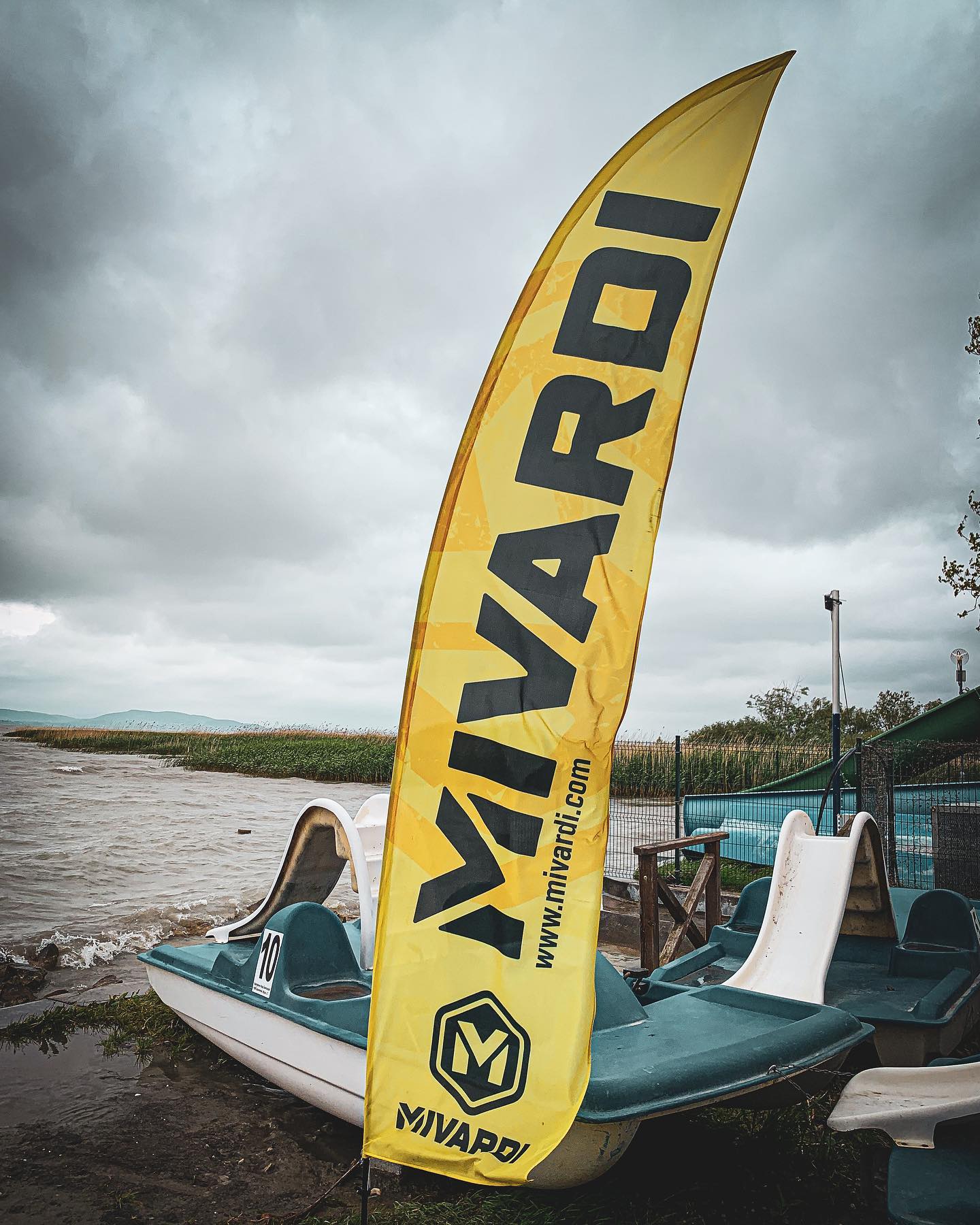 Lightweight flag with Mivardi logo including telescopic flexible pole.