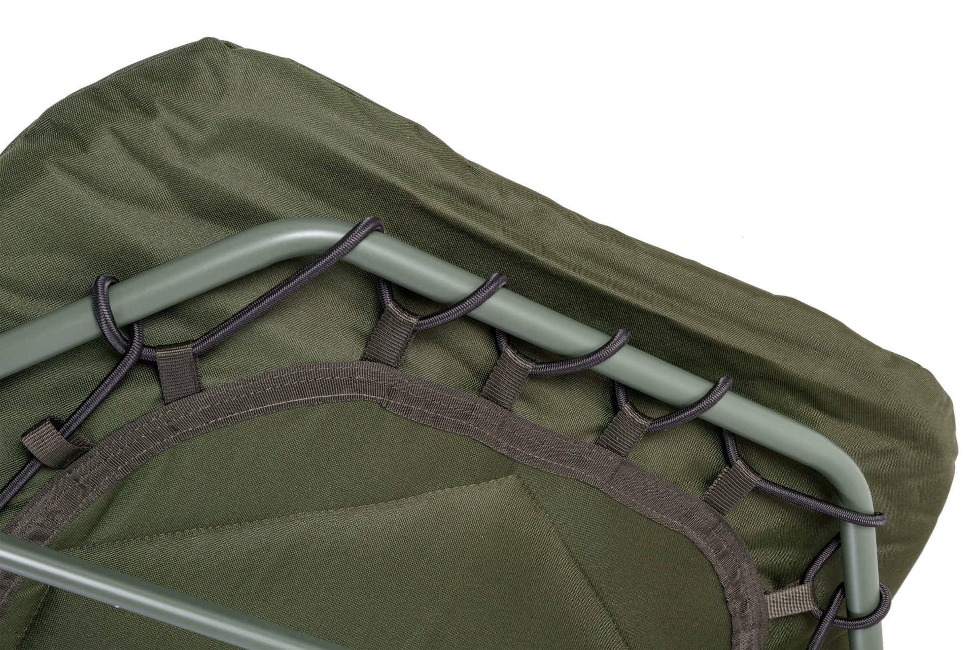 A large eight-legged bedchair in a completely new, unique design. The newly designed, enlarged mattress is equipped with a new type of padding with greater thickness. Its attractive anatomical shaping combines elements of Mivardi’s new design language with important details to enhance overall ergonomics. Combined with a sophisticated system of independent firmness regulation for the lower, middle, and upper parts of the mattress, this new bedchair offers an unprecedented level of comfort in its category. The bedchair cover uses a combination of very comfortable and warm fleece for pillow and the middle section and highly durable nylon on the edges and lower part. The telescopic legs with swivel mud feet are equipped with unique Mivardi extension locks that can be operated by pressing downwards or from the side.