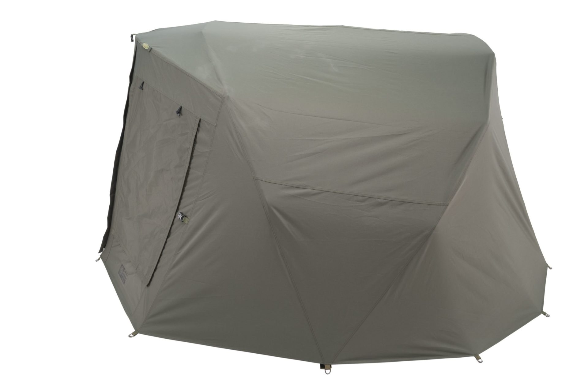 An overwrap for the Professional Bivvy. This overwrap is manufactured from the same material as the bivvy. The three full sized windows have three layers with 25 mm velcro on the front and two layers with 50 mm velcro on the rear that follow the shape and contour of the bivvy windows. There are 4 velcro rod holders and heavy duty zips with Easy Grip tags supplied as standard. This overwrap helps to eliminates condensation, increases thermal comfort and ensures the bivvy is even more stable in extreme wind.