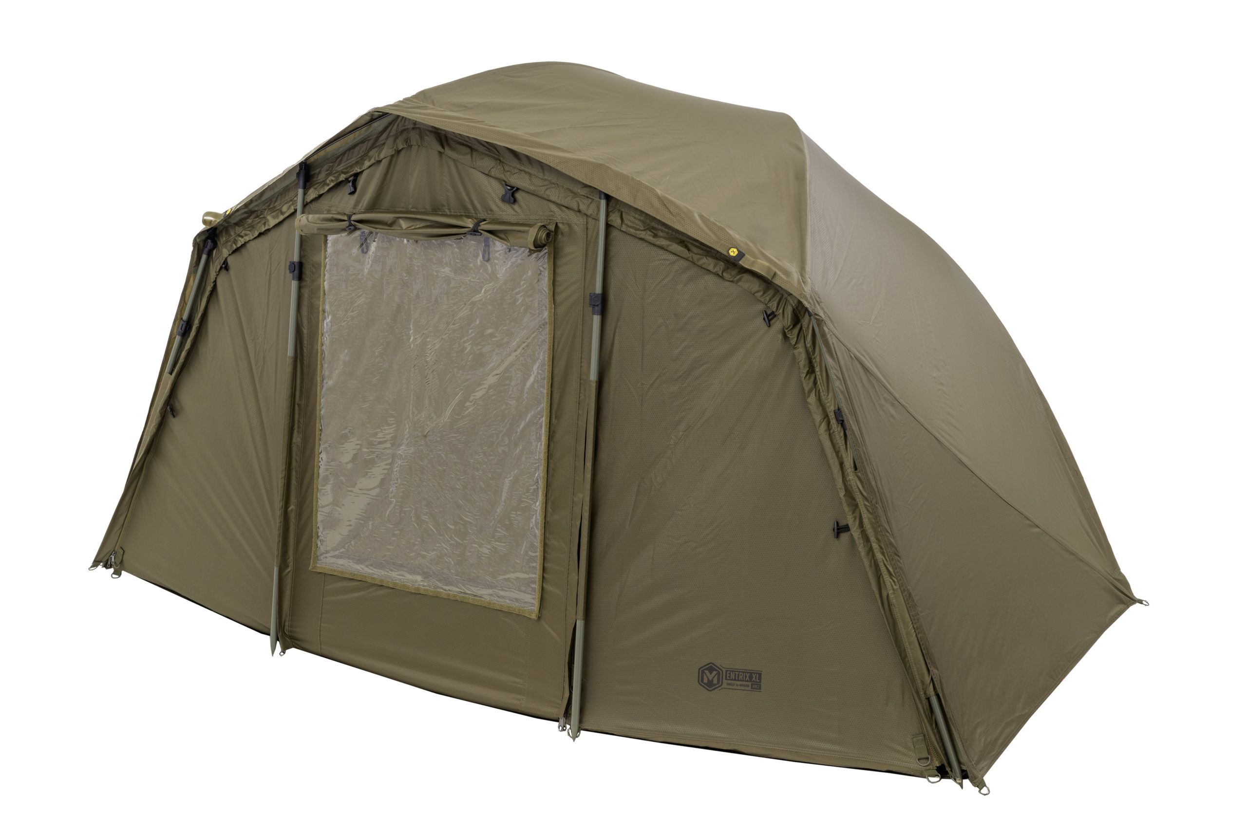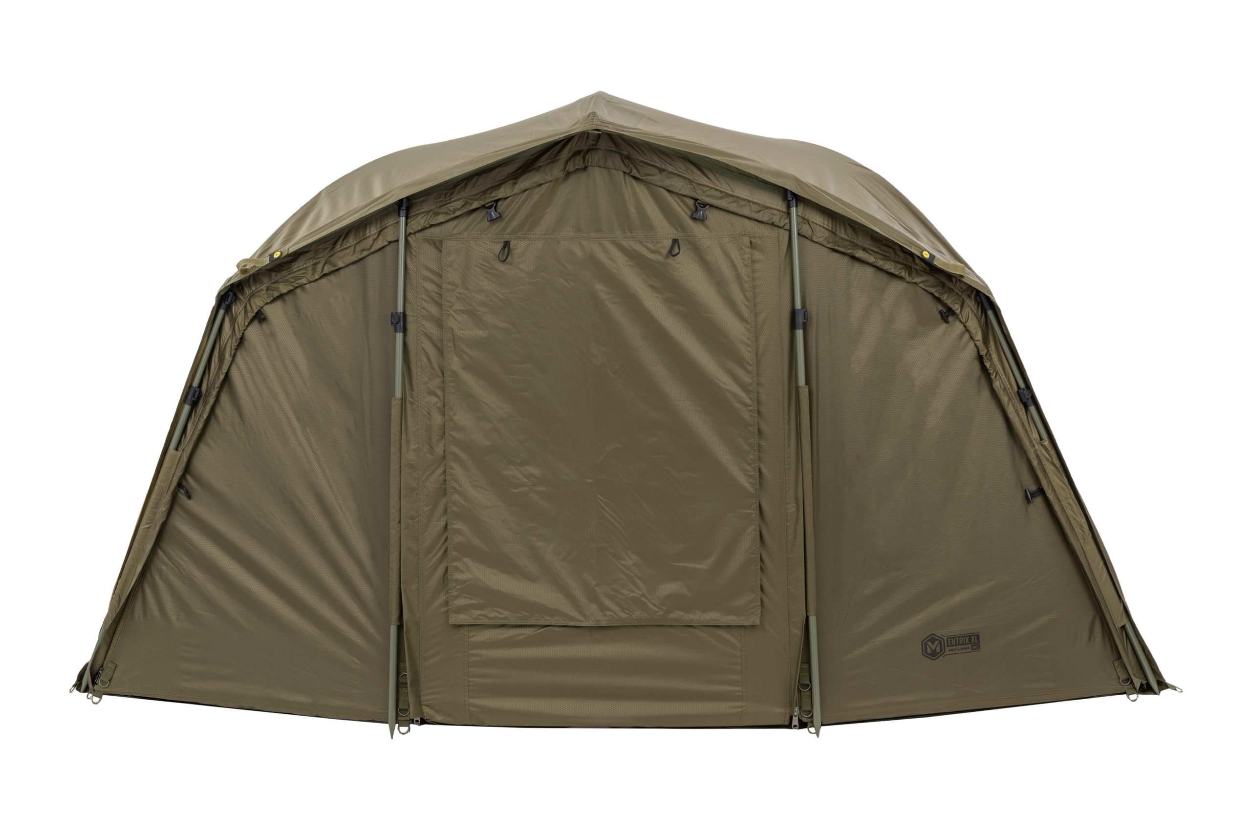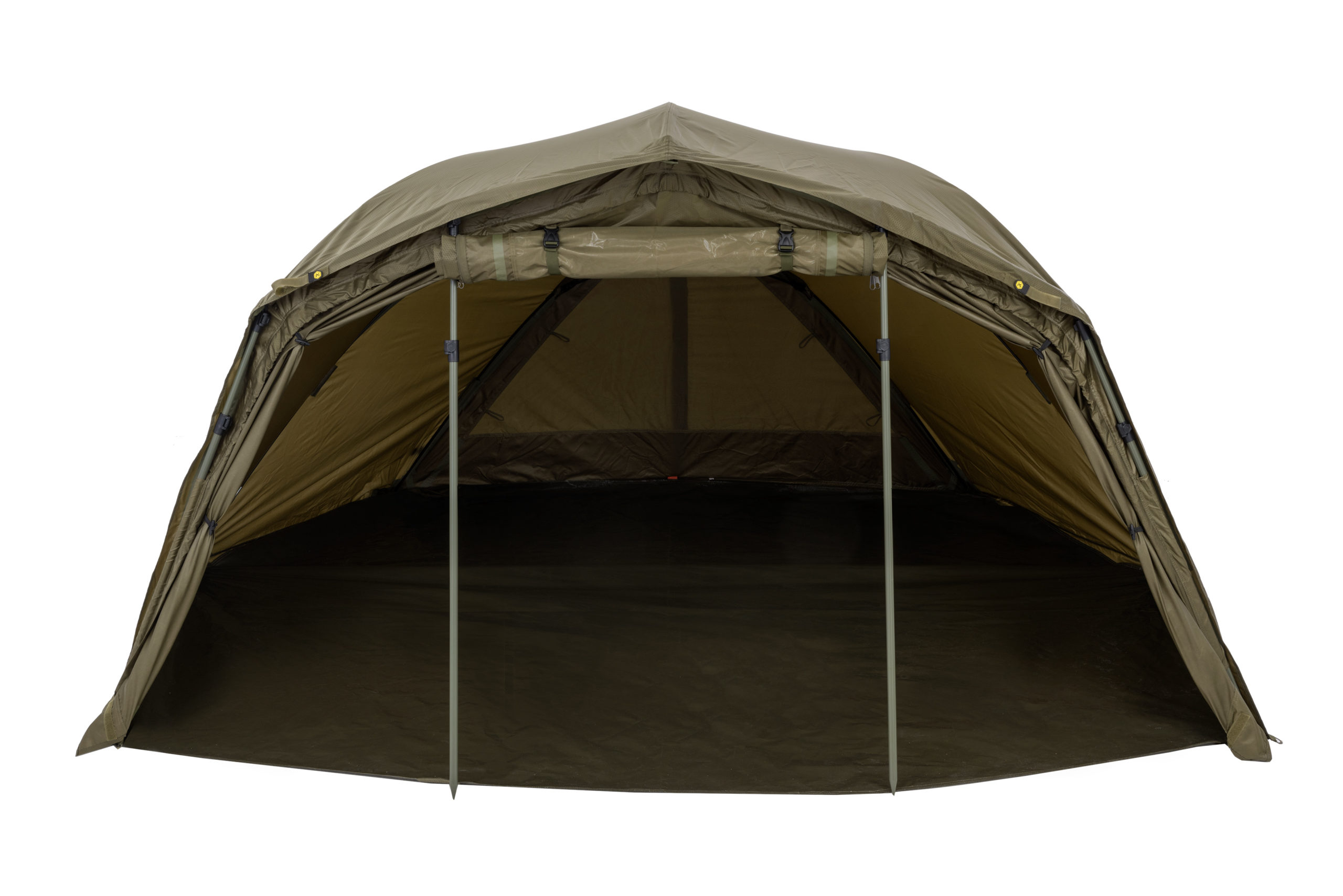Innovative and extra large brolly refined down to the last detail by the Mivardi brand. It retains the classic umbrella-style construction but uses a space-saving central block, which maximises headroom when sitting on a bedchair. This brolly introduces a series of unique and innovative structural solutions that significantly increase the internal space, improve stability, and speed up both setup and pack-down. A special feature of this brolly is the extended two-section rear ribs, which can be folded for transport — but do not have to be. Together with the optimised geometry of the remaining ribs, they create an exceptionally large internal area with an almost rectangular footprint. The Entrix Brolly in the MK2 version offers one of the largest interior spaces on the market. This allows it to be used even with the biggest bedchairs while still leaving plenty of room for a table, luggage, and other equipment. The front section is reinforced and stabilised by a two-section fibreglass pole with a uniquely designed locking system. The structure above the entrance forms a protective peak that shields the doorway from rain. The front window is three-layered (mosquito mesh / clear PVC / nylon cover). The entire front panel can be fully removed. The M-TEC300 outer fabric with a hexagonal texture now features a 10,000 mm waterproof rating and increased mechanical durability. Four included storm poles are equipped with quick-connect adaptors for very fast and easy attachment to the brolly frame. They also feature the new Mivardi locks with extremely strong clamping force, ensuring perfect tensioning of the brolly cover. The Entrix Brolly MK2 is supplied as a complete set, including a groundsheet and a front panel.