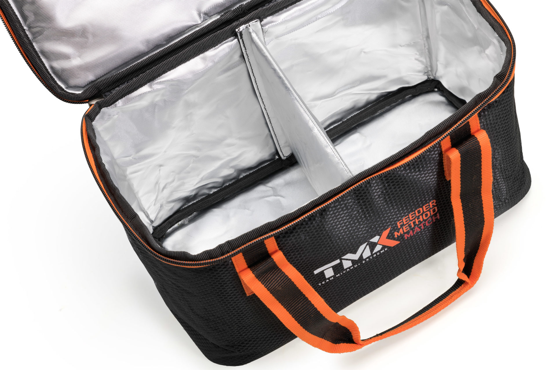 Cool bag with a completely reinforced structure and lid. It is washable both inside and out. The interior space is divided by a removable partition. The bags and other luggage in the TMX series are made from premium, extremely strong material with a luxurious woven carbon-style design. This material is completely waterproof and very easy to clean. The entire TMX series uses heavy-duty zippers of the highest quality with practical Mivardi pullers.