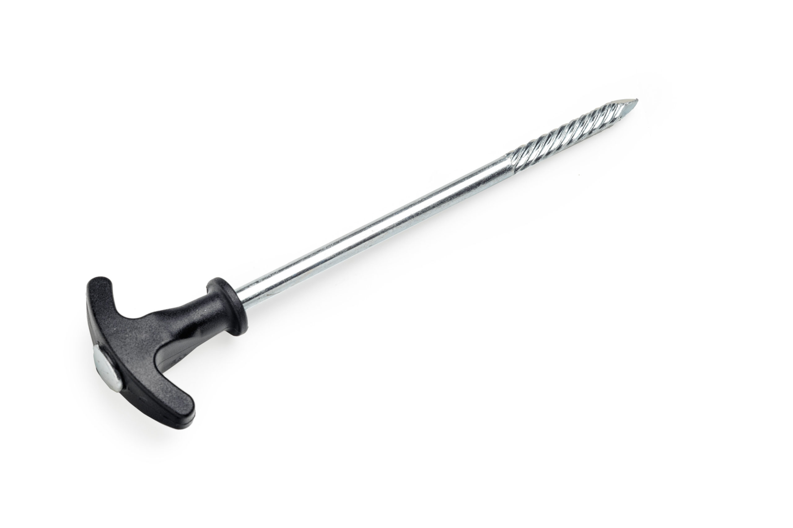 Set of 6 bivvy pegs in a durable nylon bag. The pegs are highly robust and feature a threaded design, anti-corrosion treatment, and a metal head for maximum durability, even when hammered in under emergency conditions, for example with a large stone.