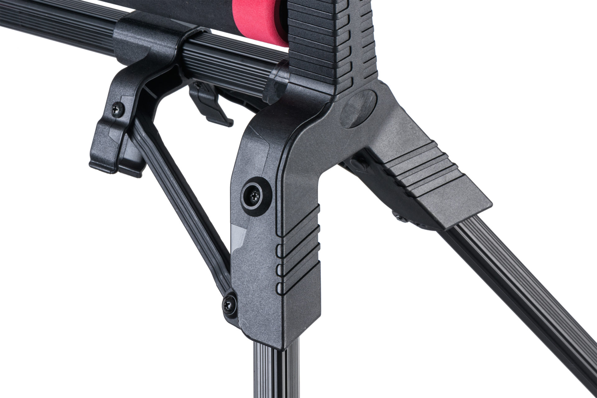 Large, lightweight, yet highly stable pole roller with two horizontal rollers, divided into two independent sections. The shape of the rollers prevents the pole from falling out during strong gusts of wind. It is equipped with telescopic legs that allow it to be raised to a significant height. Additionally, it features a heavy-duty hook for weighting the roller and comes with a transport case.