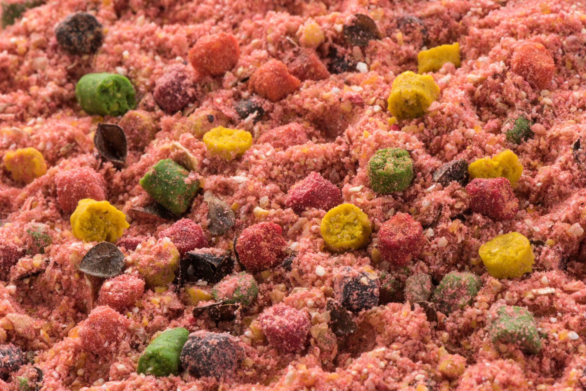 R1 mixes include pellets in various colors, enhancing the visual stimulation of fish. They are also enriched with ground wafers, ensuring perfect stickiness and optimal consistency in water. Specially selected taste stimulants, such as corn, biscuits, and breadcrumbs, increase the mix’s attractiveness and promote active feeding.