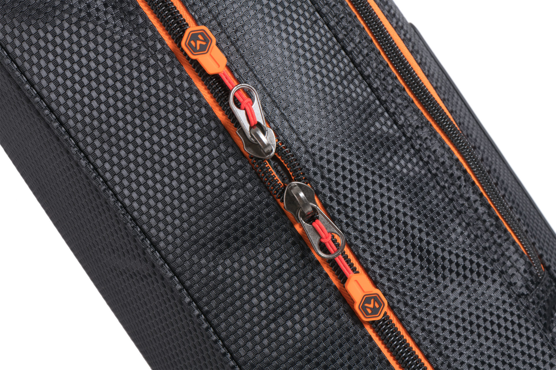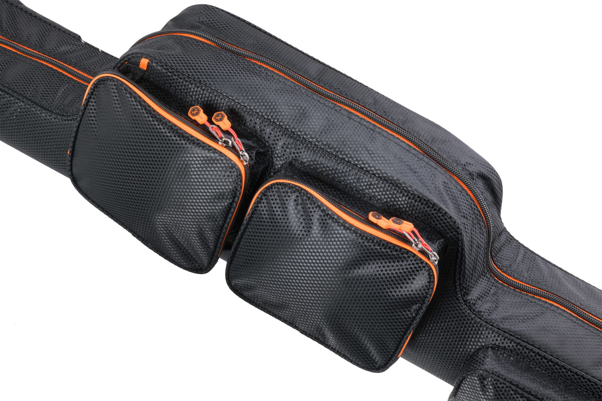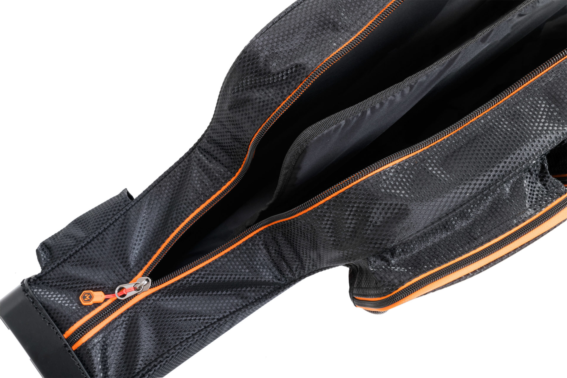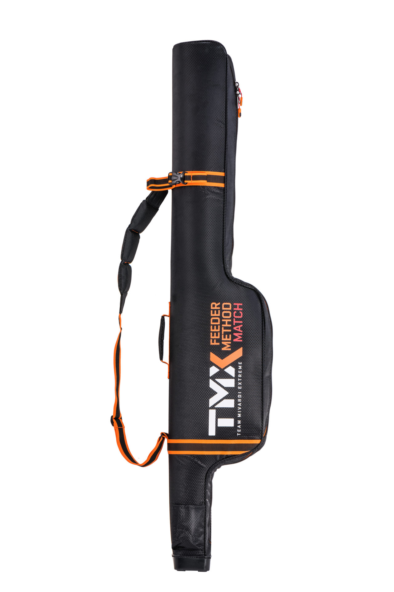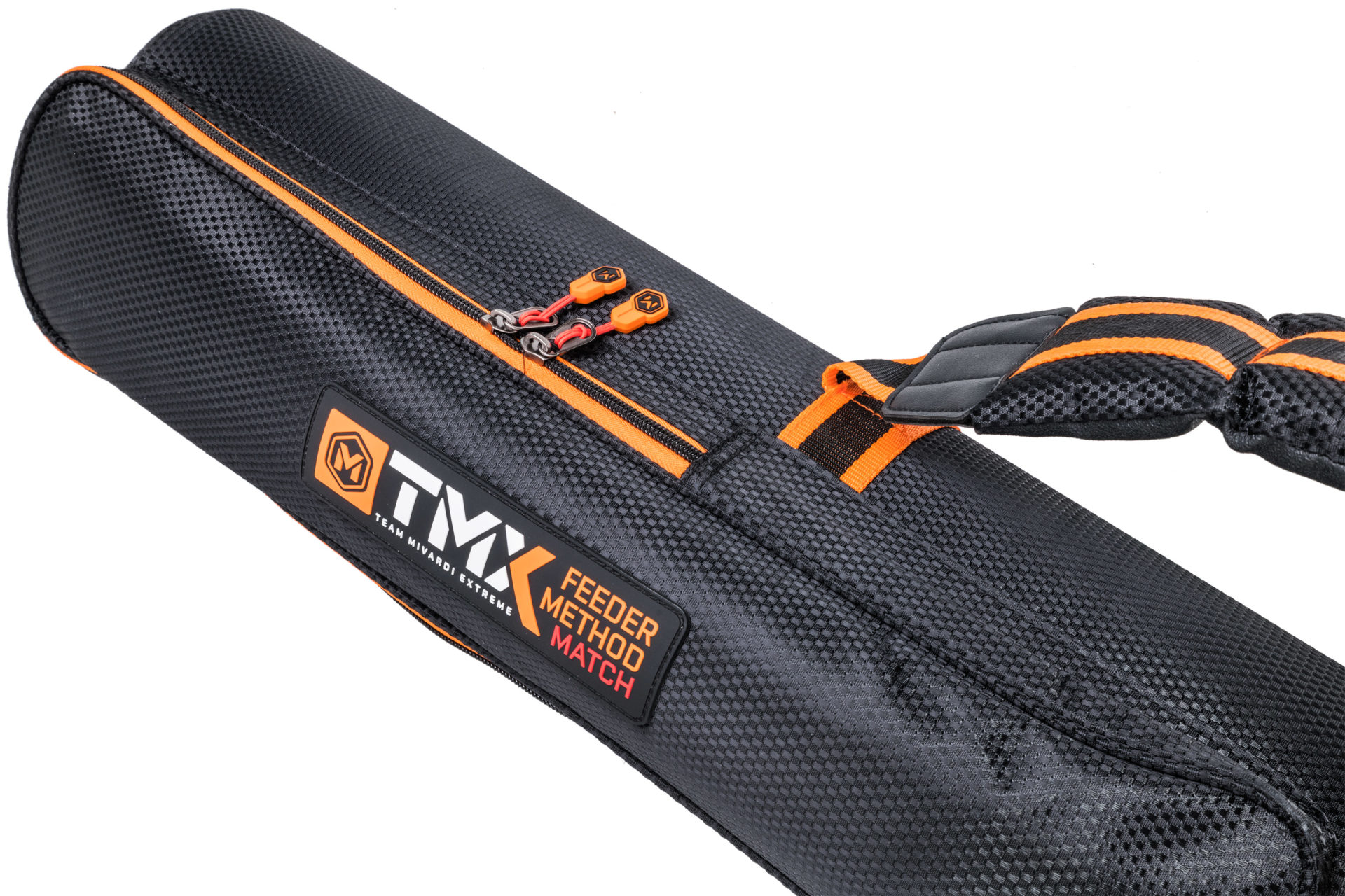 Reinforced holdall for feeder rods with additional external pockets, straps, and handles. The interior space is divided into two main compartments by a padded divider. It is designed as a multifunctional holdall for transporting two to four rods with maximum emphasis on their protection. It also allows for the storage of a large amount of additional accessories, thereby reducing the total number of bags you need to carry. The holdall is equipped with a padded shoulder strap and a handle for comfortable hand carrying. The bags and other luggage in the TMX series are made from premium, extremely strong material with a luxurious design in a woven carbon style. This material is completely waterproof and very easy to clean. The entire TMX series uses heavy-duty zippers of the highest quality with practical Mivardi pullers.