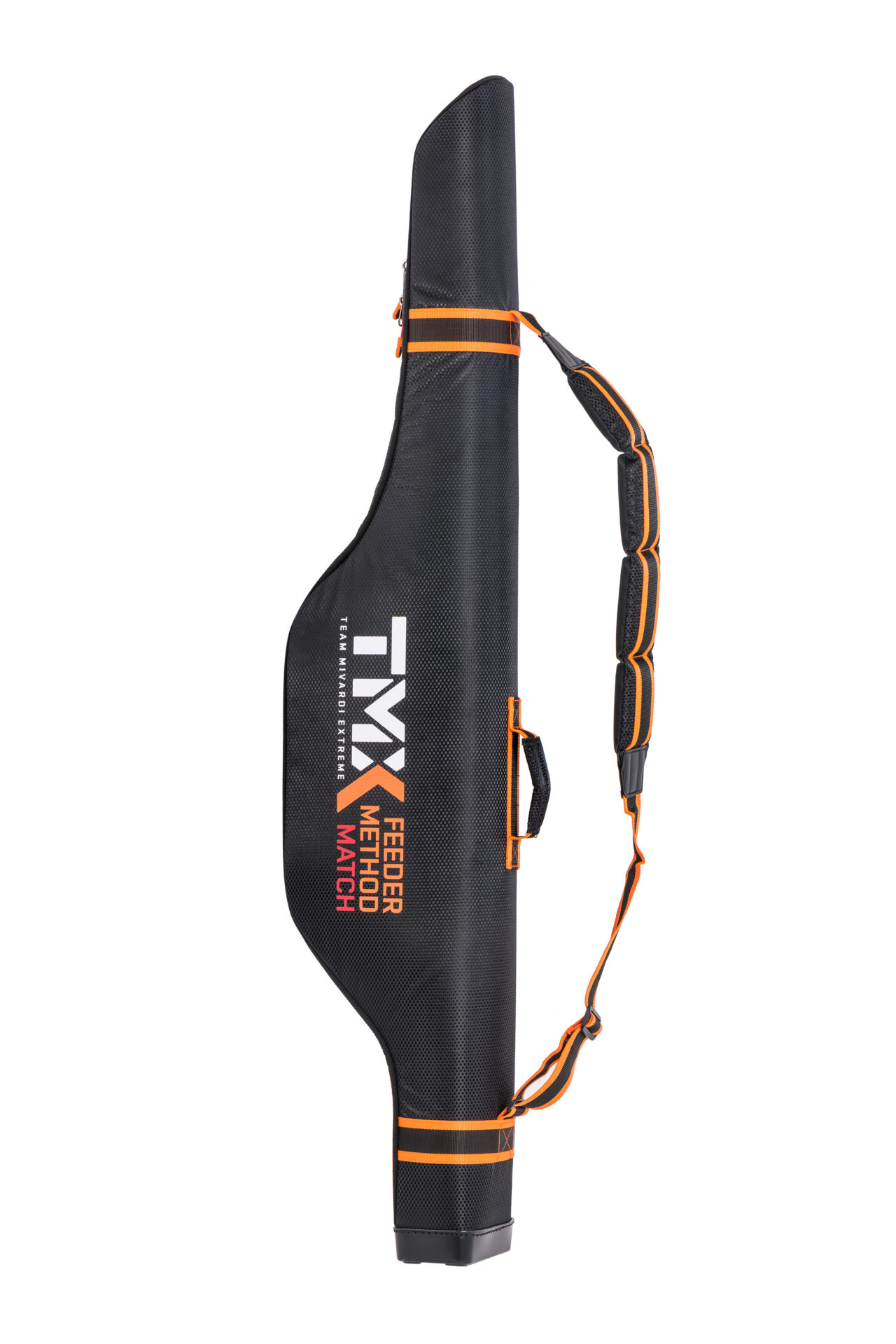 Reinforced holdall for feeder rods with additional external pockets, straps, and handles. The interior space is divided into two main compartments by a padded divider. It is designed as a multifunctional holdall for transporting two to four rods with maximum emphasis on their protection. It also allows for the storage of a large amount of additional accessories, thereby reducing the total number of bags you need to carry. The holdall is equipped with a padded shoulder strap and a handle for comfortable hand carrying. The bags and other luggage in the TMX series are made from premium, extremely strong material with a luxurious design in a woven carbon style. This material is completely waterproof and very easy to clean. The entire TMX series uses heavy-duty zippers of the highest quality with practical Mivardi pullers.