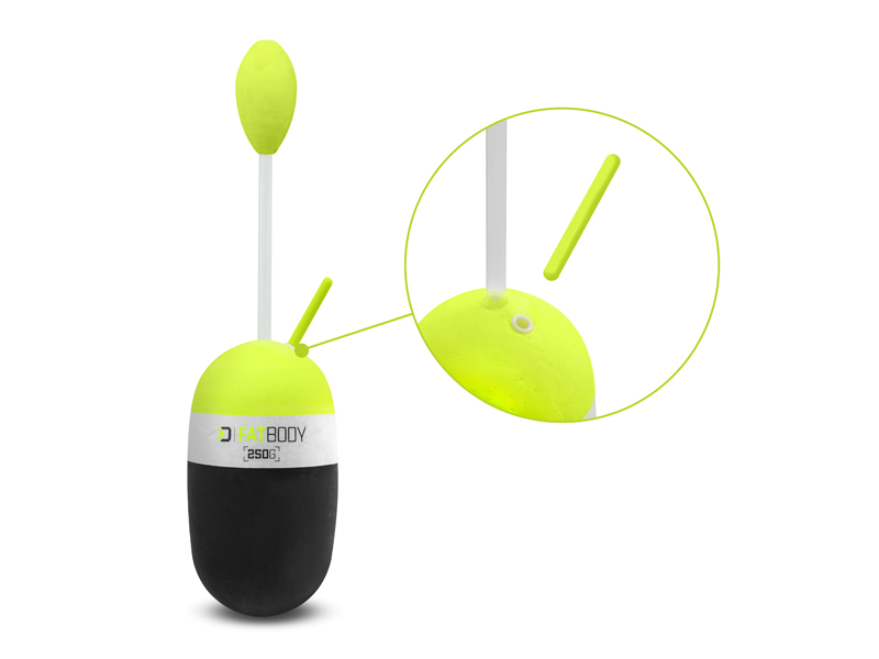 Delphin FatBODY to spławik sumowy, który dzięki swojemu kształtowi i wysokiej antenie jest dobrze widoczny nawet na większych odległościach, w falach lub w niekorzystnych warunkach. Kształt korpusu sprawia, że nadaje się do łowienia większymi rybami przynętowymi. Spławik FatBODY nadaje się szczególnie do łowienia techniką zacinania, gdzie potrafi precyzyjnie przytrzymać przynętę w wybranym miejscu.