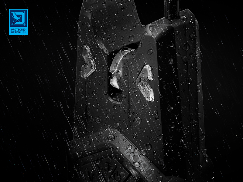 - Czarny, anodowany kapsel zakańczający dolnik z wycinanym laserowo logo „S”