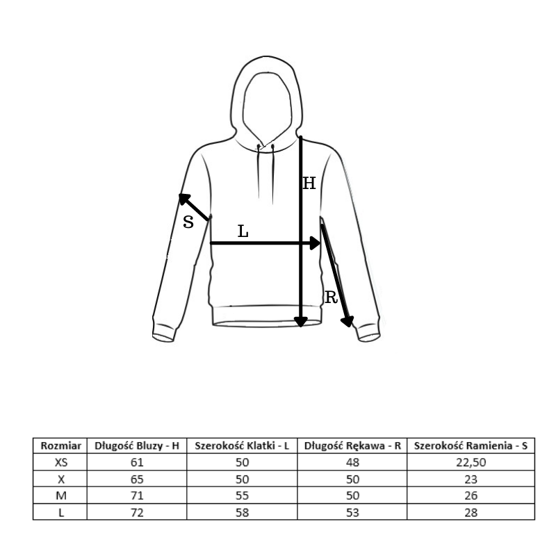 Bluza wykonana z bardzo dobrej jakości bawełny ( 80% ) w połączeniu z poliestrem (20% ). Uszyta w polskiej szwalni.