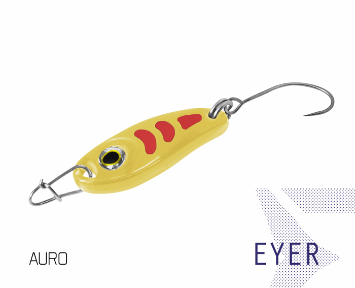 Delphin EYER to seria mikro wahadłówek przeznaczonych do połowu pstrągów. Ich korpus wykonany jest ze stopu cynku. Wyposażone są w wysokiej jakości pojedynczy haczyk z serii BOMB! Posiadają również HardLure i FASTLOCK MICRO SNAP, aby nie stracić żadnej ryby. Przynęty te są również bardzo skuteczne podczas łowienia małych ryb drapieżnych na jeziorach lub rzekach. Są one bardzo kuszące i atrakcyjne dla drapieżników, co widać na pierwszy rzut oka. Przynęty EYER są wyposażone w duże sztuczne oko, które doskonale imituje żywą przynętę.